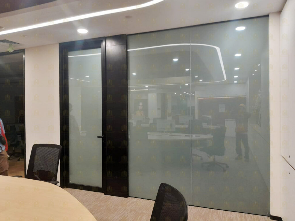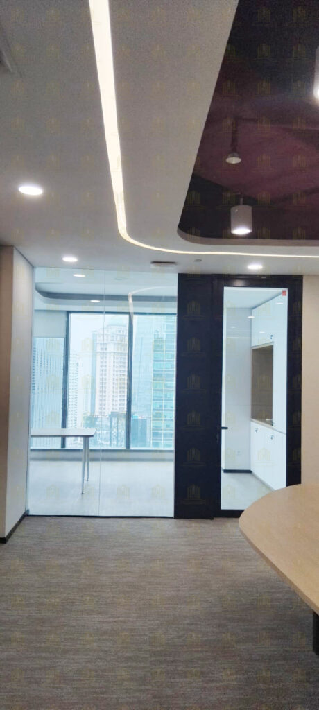 Untuk menciptakan lingkungan kerja yang terbuka namun tetap terjaga privasinya, Griya Djaya Sentosa menerapkan desain pintu swing kombinasi dengan partisi kaca di setiap ruangan. Konsep ini memungkinkan pencahayaan alami masuk secara optimal, menciptakan suasana kerja yang terang dan nyaman. Selain itu, penggunaan aluminium sebagai material utama memastikan kekuatan serta ketahanan dalam jangka panjang.