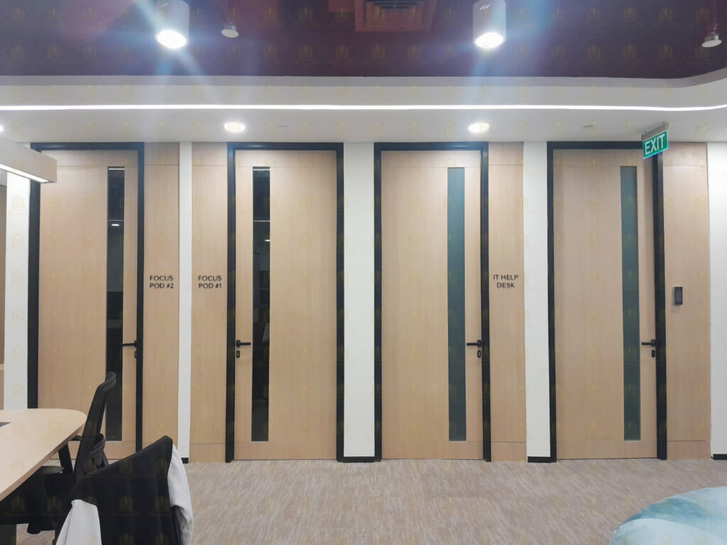 Pintu Swing Kombinasi dengan Partisi Kaca di Setiap Ruangan