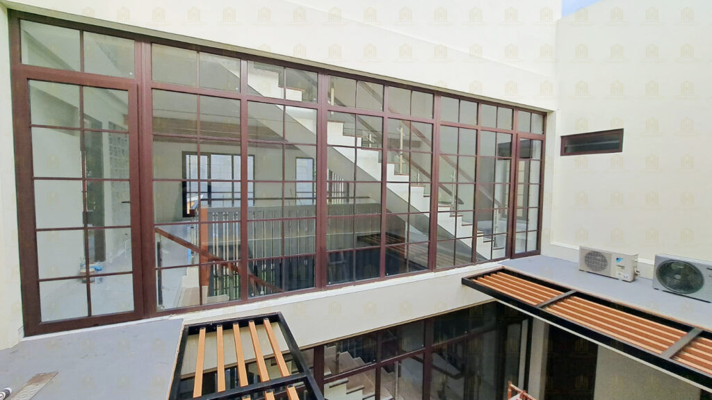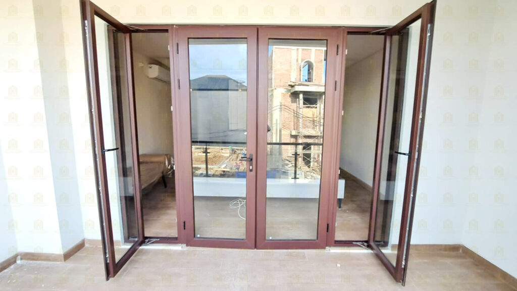 - Pintu Swing Double Kombinasi Kiri Kanan dengan Jendela Swing untuk Ruangan Lantai 2. Menghadap ke luar, pintu ini menambah keindahan eksterior lantai dua serta memberikan akses yang nyaman ke balkon atau area luar rumah.