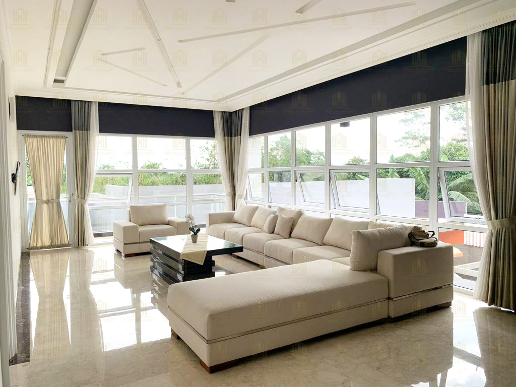 Untuk memberikan pencahayaan alami yang maksimal dan ventilasi udara yang optimal, dipasang jendela jungkit yang menghadap langsung ke kolam renang. Tambahan kacamati pada jendela ini tidak hanya meningkatkan estetika, tetapi juga memperkuat struktur sekaligus memberikan efek pencahayaan yang lebih baik. - Pintu Lipat dan Pintu Swing yang Fungsional