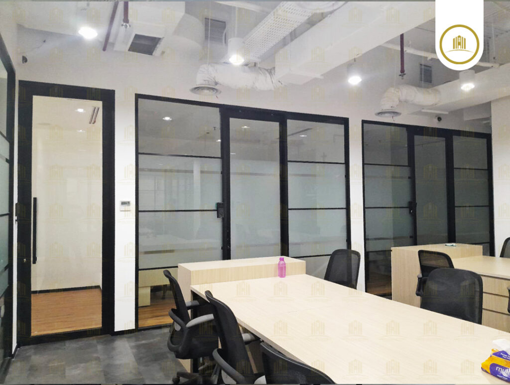 Kusen aluminium dirancang sesuai dengan kebutuhan klien, menciptakan harmoni antara tampilan eksterior dan interior kantor.