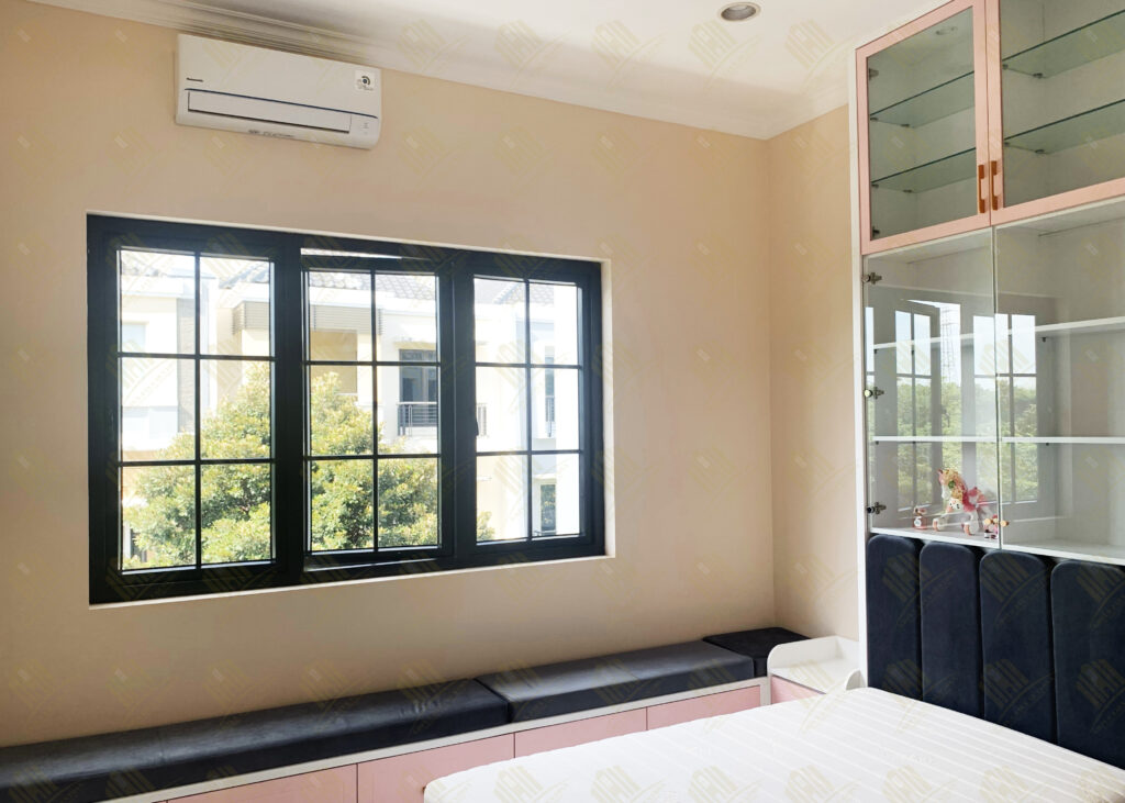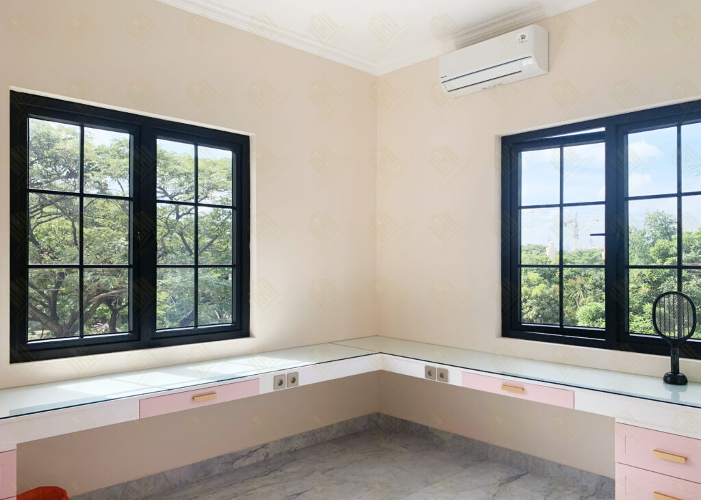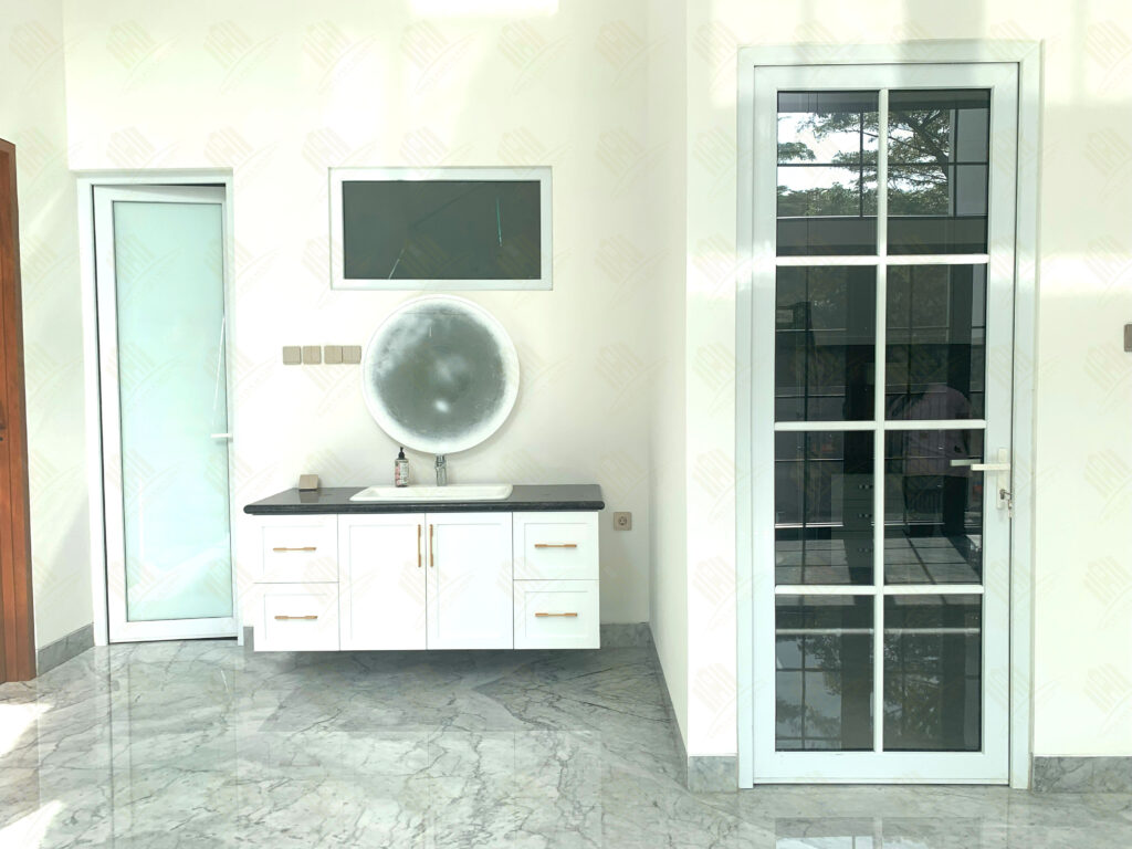 Dalam rumah ini, hampir seluruh pintu dan jendela dihiasi dengan ornamen yang memberikan kesan elegan dan artistik. Ornamen ini dirancang khusus untuk menyatu dengan kusen UPVC, menciptakan harmoni antara kepraktisan modern dan keindahan tradisional. Pintu dan jendela berornamen ini tidak hanya berfungsi sebagai elemen dekoratif, tetapi juga menambah nilai estetika rumah secara keseluruhan.