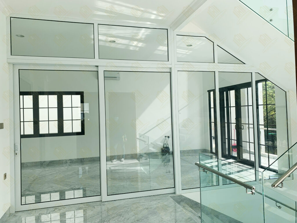 Pintu Sliding Besar 2 Daun dengan Kacamati sebagai Penyekat Ruangan